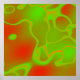 Um padrão de abstrato art de neon verde e vermelho com salpicos de laranja dá a esta imagem colorida um olhar quase fictício.