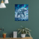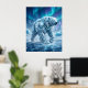 A majestic polar bear strides across a frozen futuristic landscape, built from crystalline armor plates, glowing frost circuitry, and translucent ice-core structures. White, cyan, silver, and blue light pulse through its powerful frame, creating a noble and commanding presence. Geometric glaciers, icy plains, glowing ground fissures, drifting snow, and aurora skies form an epic cyber-arctic world. This premium polar bear design is ideal for offices, gaming rooms, winter decor, and wildlife collectors.