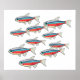 Neon Tetra design mostra uma escola de neon tetras natais. Foto desenhada à mão deste popular aquário tropical para fãs e detentores.