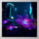 A cyberpunk vision of flowers as wireframe holograms, pulsing with electric cyan and magenta light—a digital nature art print of striking contrast