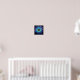This vibrant poster features a neon flower painting with iridescent blue, teal and purple petals and a glowing yellow center on a deep black background - modern floral art.