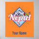 Poster Nepal com Bandeiras Retro Feriado Vintage