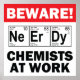 Póster nerd-químico em sinal de trabalho