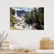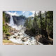 Esta foto mostra o final do inverno em Nevada Falls está em cheio e a água treme do penhasco e se levanta novamente no rio mercado enquanto passa rochas e árvores.