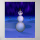 Um boneco de neve no Polo Norte apreciando as belas luzes de Norte violeta.