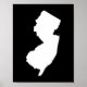 A forma do estado de Nova Jersey em preto e branco. Você pode alterar a cor do plano de fundo ou adicionar uma mensagem de texto de souvenir personalizada.