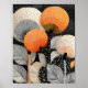 Essas flores texturizadas e radiantes em um campo preto estrelado apresentam uma impressionante ilustração floral abstrata com grandes flores circulares em tons quentes de laranja, creme e preto, cada uma construída a partir de finas texturas de linhas radiantes e acentos pontilhados. Folhas alongadas com padrões lineares ousados se erguem contra um campo denso de pontos brancos sobre preto profundo, criando um contraste dramático e uma estética gráfica moderna. Projetado em uma proporção versátil de 4:5, este download digital de alta resolução traz arte luminosa e charme artesanal para qualquer espaço, perfeito para enquadrar, presentear ou aprimorar a decoração da sua casa com elegância vibrante de jardim. #DownloadDigital #BotânicaModerna #IlustraçãoDePadrão #DesignDeArteGráfico