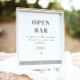 Esta placa de bar aberta imprimível apresenta um design minimalista moderno com tons verdes de sábio. Use esta modelo para alterar as fontes, as cores da fonte e a cor do plano de fundo para corresponder ao estilo do evento.