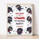 Bem-vindos a uma celebração épica com o nosso Sinal de Boas-vindas de Aniversário Ninja! Este cartaz marcante apresenta uma borda adornada com njas de desenho animado em poses dinâmicas, cercada por estrelas ninjas, estrelas e confetti. Com um esquema de cores vermelho, preto e cinza ousado e letra divertida, este sinal define o tom perfeito para uma extravagância com tema ninja!