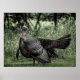 Masculino Turquia exibindo suas penas de cauda cercadas por árvores e grama verde de sábio apenas uma dica de cor nesta foto quase negra e branca