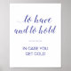 Esta elegante placa azul de cobertor do casamento, com a frase bonitinha "ter e segurar no caso de você ficar frio" é excelente para que os convidados saibam que há cobertores disponíveis para eles usarem durante o casamento. Parte da coleção Alejandra.