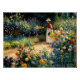 "No Jardim" é uma representação vibrante da vida ao ar livre. A cena retrata um jardim exuberante cheio de flores florescentes, onde uma figura de solteiro está desfrutando leisamente do ambiente sereno. A figura central, muitas vezes considerada esposa de Monet, Camille, é o carregando de um cesto de flores rodeado de uma profusão de flores coloridas. A pintura é caracterizada pelo seu rico uso de cor, luz deliciosa e a delicada interação entre sombra e luz solar, que cria um senso de calor e tranquilidade. A bruxaria solta e a atenção aos efeitos da luz sobre os elementos naturais refletem um estilo impressionista, enfatizando a beleza dos momentos cotidianos passados na natureza. Esse trabalho captura a essência de uma tarde pacífica e iluminada pelo sol num jardim, onde a vibração das flores e a atmosfera suave se combinam para criar uma cena eterno de relaxamento e contentamento.