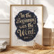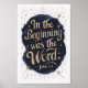 Inspire fé e reflexão com esta bela impressão artística apresentando as palavras profundas de João 1:1. A bela caligrafia dourada sobre um fundo de azul profundo e detalhes estrelados cria um design visualmente impressionante e espiritualmente edificante. Perfeito para adicionar um toque de elegância e inspiração à decoração da sua casa ou escritório.
