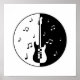 Design preto e branco de uma guitarra elétrica com notas de música. Use o botão personalizar para personalizar.