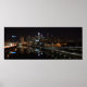 Esta noite, foto da cidade de Filadélfia foi tirada de uma ponte que atravessava o rio Schuylkill. O passeio do rio Schuylkill Banks corre ao longo da margem do rio mais perto do centro da cidade, enquanto as linhas desfocadas de carros que viajam na Expressão Schuylkill podem ser vistas à esquerda.