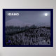 A vista da minha cabine montanhosa na pantaneira Idaho; na montanha Katka perto da cidade de Bonners Ferry. A luz da lua, ainda que ligeiramente obscurecida por nuvens, reflete sobre as montanhas cobertas de neve. Coníferas cobrir paisagem. O texto "IDAHO" também é exibido. Sasquatch mora aqui.