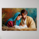 Esta pacífica cena da Natividade captura o amor silencioso de Maria e José enquanto olham para o recém-nascido Jesus. Com cores quentes e expressões suaves, esta imagem traz o coração do Natal para o seu espaço. Uma bela maneira de refletir sobre o dom do nascimento do Cristo.
