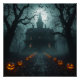 Uma atmosfera misteriosa e assombrosa do Halloween com uma mansão escura, morcegos voando e lanternas tremendas iluminando o caminho sob uma lua brilhante. ArtivaNest - Uma visão do Neeranchal