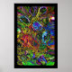Arte digital em camadas complexas em cores vivas. Abstrato e psicodélico.