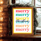 Procurando uma decoração de natal moderna e verde? Olhe para a nossa Poster de Natal Branca Branca e Colorida Moderna e Limpa! Decoração de Natal colorida com um texto feliz de Natal!