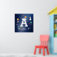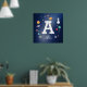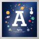 Lindo cartaz de monograma personalizado azul marinho com vários objetos espaciais. Você pode mover facilmente todos os objetos (ou alterar o tamanho da letra) na ferramenta de edição.