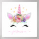 Esta adorável arte de poster de arquivamento de unicórnio feminino perfeita para berçários e quartos de meninas apresenta uma linda face unicórnio com pestanas decoradas com um chifre rosa e flores rosa e roxas acentuadas por corações dourados. Abaixo está um nome no moderno roteiro escrito à mão rosa para você personalizar. Digite o nome entre os símbolos de ligadura para manter as bandeiras na primeira e última letras do nome. Desenhada por Susan Coffey.