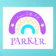 Poster de arco-íris simples e estilizado. Em tons unissexos de púrpura, aqua e amarelo. Esta poster é para o nome de Parker, Guardião de um parque. Ou você pode personalizar com sua própria escolha de nome e nome, significado ou mensagem. A arte gráfica original Sarah Trett para www.mylittleeden.com e o nome exclusivo no Zazzle.