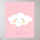 Poster Nome do Bebê Sleepy Kawaii Cloud Pastel Rosa