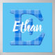 Nome dos rapazes com letra E inicial. Impressão de padrão de xadrez azul. Poster decorativo para o quarto de menino. O texto pode ser editado para tornar este poster exclusivo.