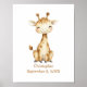 Poster Nome Personalizado Birthday Giraffe Nursery Baby
