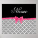 Nome personalizado quatrefoil cinza moroccan trellis padrão com uma faixa cor-de-rosa com arco brilho (não brilho real) personalizada com apenas adicione seu nome, presentes ou presentes monogramas ou suas iniciais. com uma elegante e tradicional inscrição no rico