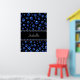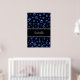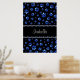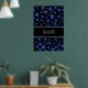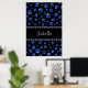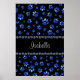 Nome personalizado, patas de cachorro brilho azul em fundo preto.