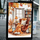 Imagem aquosa de um canto de leitura confortável, com uma xícara de chá, livros sazonais e decoração quente do outono.