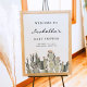 Este sinal de boas-vindas do chá de fraldas apresenta cactos de cor aquosa boêmica picante e design mínimo. Todo o texto é editável para corresponder a qualquer necessidade de evento - chá de fraldas, chá de panela, fim de semana de folhetos, etc.