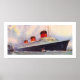 Imagem de ilustração publicitária vinda da Normandie da French Line mostrando a longa e graciosa visão de três quartos do fabuloso navio de deco de arte.