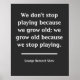 Citação de George Bernard Shaw. "Não paramos de brincar porque envelhecemos; envelhecemos porque paramos de brincar."