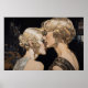 Pintura de duas belas jovens argentinas em vestidos elegantes de cocktail compartilhando segredos íntimos em uma boate em Miami Brickell. Este é outro design de 100% original de Hamster de Combate.