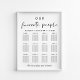 Cartaz moderno para gráfico de assentos de casamento para até 12 mesas com "Nossas Pessoas Favoritas" em uma fonte elegante e tipografia simples, seus nomes e data de casamento unidos por um coração e "Estamos tão felizes que você está aqui." Selecione a opção de download digital para editar com alterações de última hora e imprimir localmente.