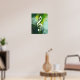 Uma ideia legal de decorar uma parede de quarto para um músico. Imagem de uma nota de música branca (clave de triplo) num fundo verde de cor aquosa