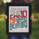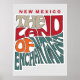 Design tipográfico divertido e colorido com um retrorreflector mostra o estado do apelido do Novo México: A Terra do Encantamento exibida dentro de uma silhueta em forma de estado