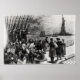 New York, da American School - Bem-vindos à terra da liberdade - Um navio a vapor oceânico passando pela cena da Estátua da Liberdade - no baralho, ilustração do 'Jornal Ilustrado de Frank Leslie', segundo de julho de 1887, localizado em uma Coleção Privada. A cena de Nova Iorque - Bem-vinda à terra da liberdade - Um navio a vapor oceânico que passa a Estátua da Liberdade - no pavimento da garagem, ilustração do "Jornal Ilustrado de Frank Leslie", segundo de julho de 1887, foi criada por volta do século XIX.