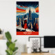 Entre no futuro com Nova York! Este poster de viagens impressionante apresenta uma mulher com um vestido vermelho e chapéu arrojados, mirando num horizonte vibrante dominado pelo icônico Empire State Building. Banhada em uma explosão solar brilhante, a cena exumenta inovação e energia, combinando encanto retrô com um talento moderno. Experimente o pulso da cidade onde a criatividade não conhece limites!