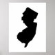 A forma do estado de Nova Jersey em preto e branco. Você pode alterar a cor do plano de fundo ou adicionar uma mensagem de texto de souvenir personalizada.