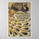 Ilustração Vintage Art Nouveau poster Macmillan's Illustrated Standard Novels, Peacock Edition, 1896, por Albert Angus Turbayne. Art Nouveau poster apresenta um enorme padrão de pássaro, penas de pavão em ouro com quadro preto