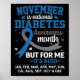 Poster Novembro é Consciência da Diabetes Mês Azul e Cinz