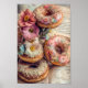 Mostrando rosquinhas florais extremamente adoradas, esta Arte AI cativa com suas elegantes e artífices confeituras. A imagem retrata um conjunto de rosquinhas deliciosas adornadas com intrincados designs florais, exuando encanto e arte culinária.
