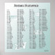 Este poster tem os números romanos 1-100 listados em 4 colunas. Há 5 algarismos dispersos apenas para aumentar a complexidade.