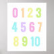 Apresenta números de 0 a 10 em um esquema de cores pastel, arco-íris. Corresponde a outros itens na nossa Coleção de Salas de Reprodução. Outros esquemas de cores também estão disponíveis.