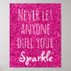 A poster de inspiração impressão de citação motivacional apresenta um olhar brilhante, rosa-quente, em segundo plano e lê Nunca deixe ninguém puxar seu brilho em letras brancas modernas e modernas. Um presente inspirador perfeito para raparigas adolescentes, e decoração feminina para um adolescente. Um presente de formatura único para ela também.