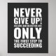 Este design com "Nunca desista! Fracasso e rejeição são apenas o primeiro passo para o sucesso" é um presente perfeito para mulheres, homens, família, pais ou para você que amam citações inspiradoras, motivacionais ou positivas.